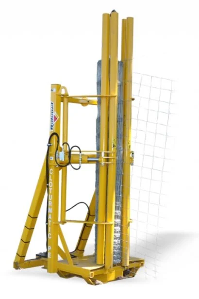 Loaded on a platform, the wire mesh roll unrolls vertically as the shovel advances, allowing for clean and effortless work. The machine is equipped with a hydraulic tensioning system, operated in the cabin by the operator, to press the mesh along the posts for maximum tension, even on uneven terrain. A hydraulic holding clamp maintains tension and prevents any unwinding during roll junction or nailing operations, ensuring a quality fence.