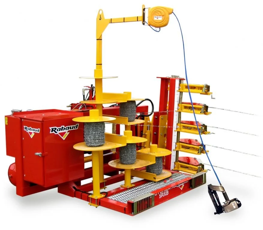 The CLOTURMATIC RXB runs off the tractor pump or PTO and is available in 4 models for making barbed wire fencing with 2, 3, 4 or 5 strands in only one pass. It unwinds and puts up barbed wire coils up to 500 m long and even stretches it thanks to the stretching pinions and their separate disc brakes.