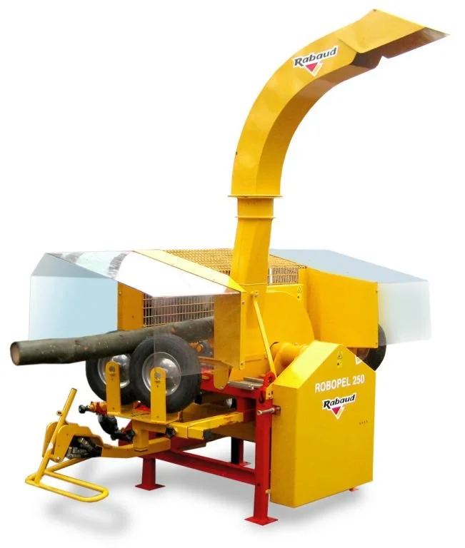 - Semi-automatic peeler adaptable to 3-point tractor. 20 HP combined electric/hydraulic power unit (optional).