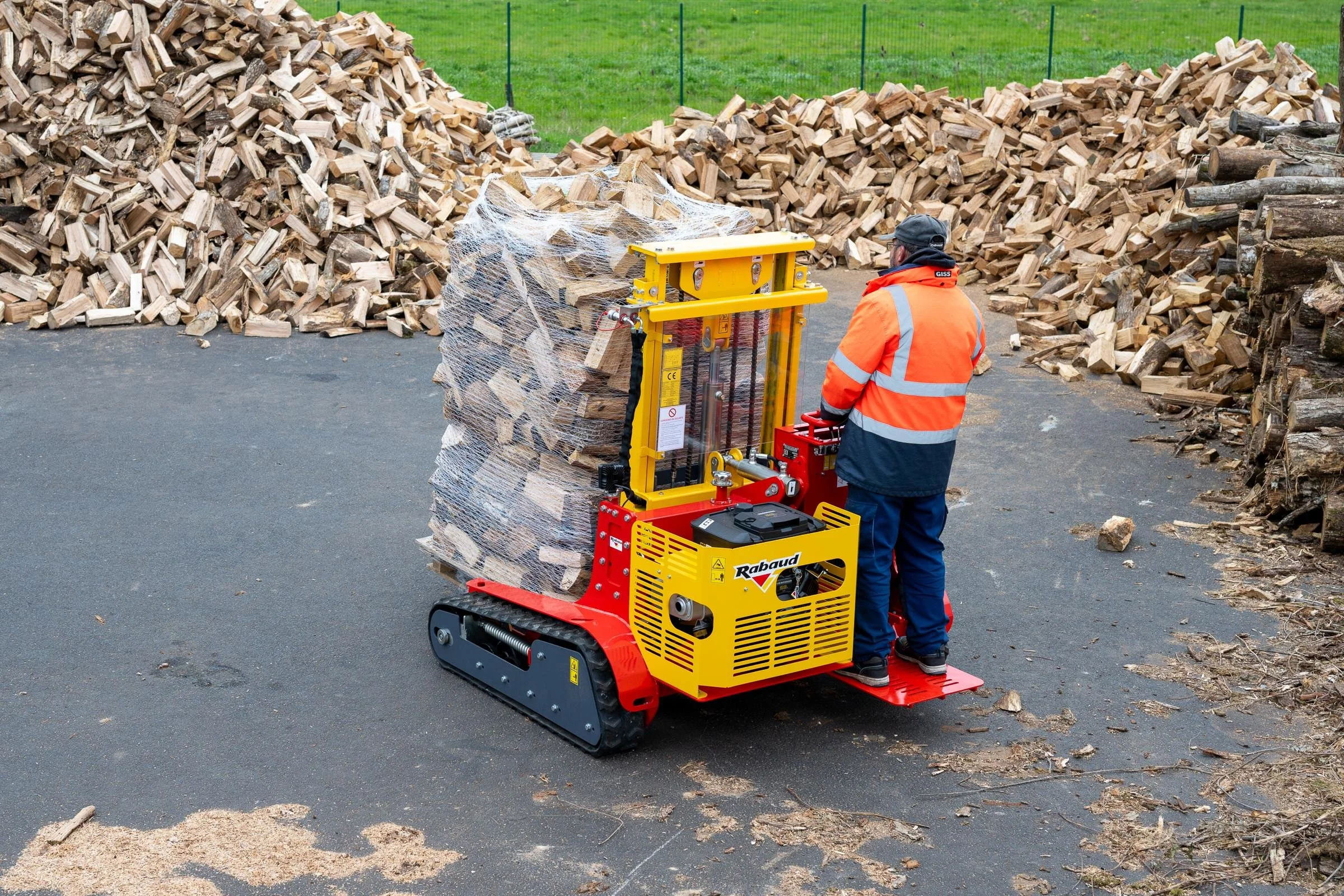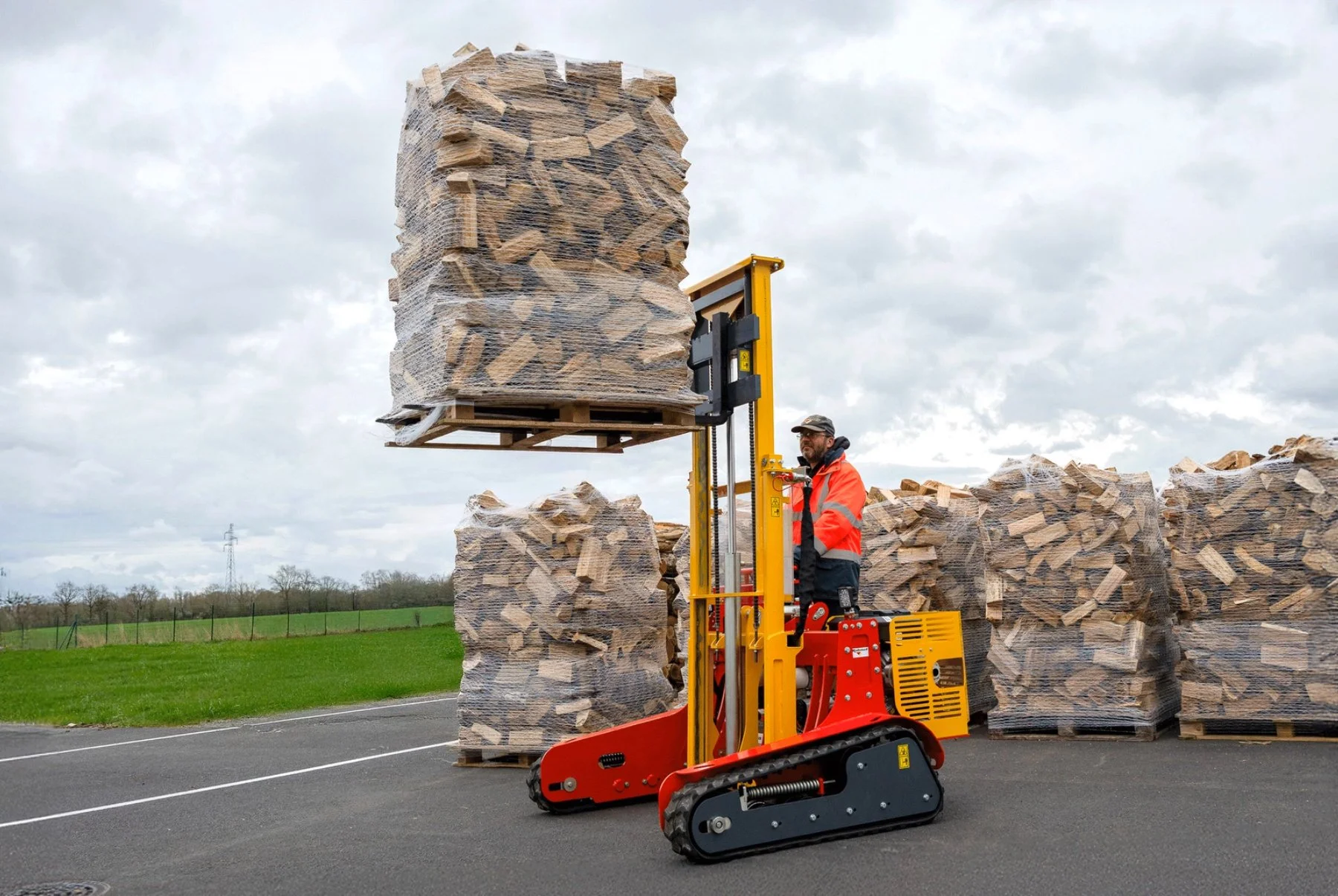 The TRACKPALL 1800 is an all-terrain forklift/pallet stacker on tracks, designed to simplify pallet handling in difficult environments. Ideal for wood yards, farms, markets, or industrial sites, it stands out for its ability to operate on steep or uneven terrain.