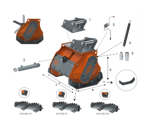 • Option to configure the rotor with fixed carbide shear teeth (CP type) ideal for deep cleaning in mixed environments with shrubs, brambles, and bushes