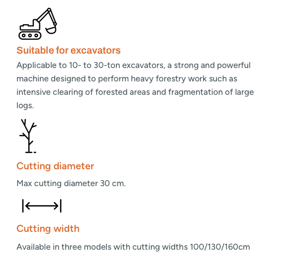 Fix-tooth mulching heads suitable for machines from 10.0 to 30.0 tons.