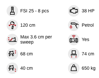 The FSI B31 980 Remote has a larger engine, 38 HP, compared to the 26.5 HP of the B31 790 model. The hydraulic system has been upgraded to maximise this extra power, and the chassis has been lengthened to accommodate the larger engine. However, it remains a compact machine with great manoeuvrability, easy-to-use controls, a large working area, and no daily maintenance requirements.