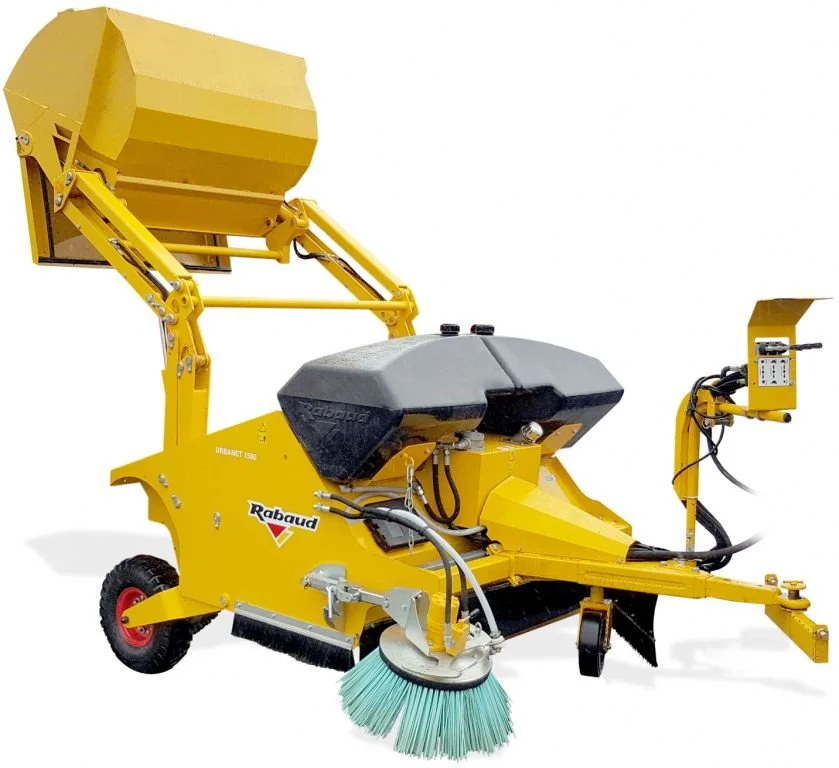 The URBANET 1500 G is specifically for small tractors (with a 3 way dual acting valve or optional PTO with 3 way dual acting valve) from 20 Hp. The hydraulic lift arm of 2100 mm height is perfect for emptying the collection into a dumper or trailer.