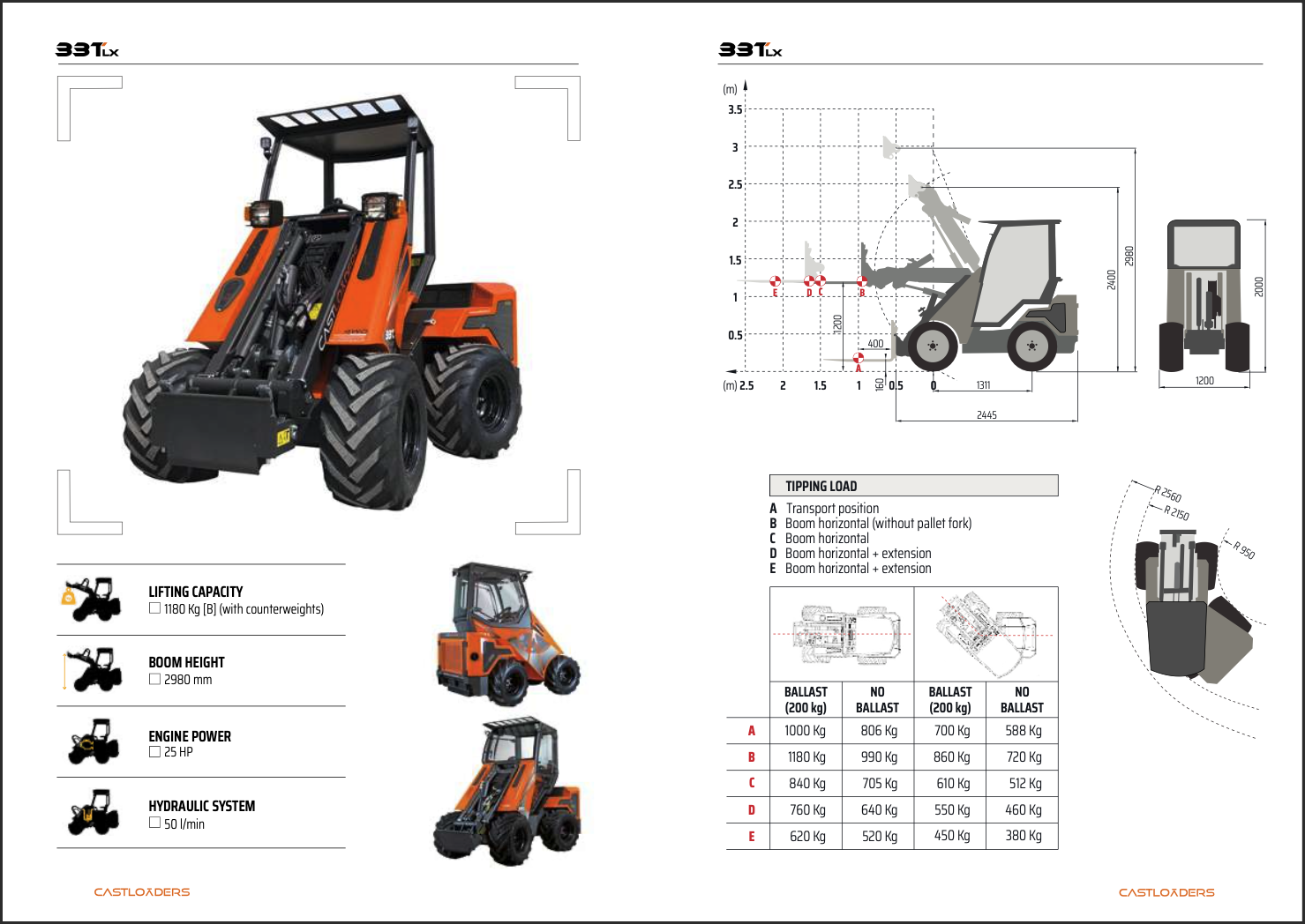 - Lifting: 1180kg with counterweights